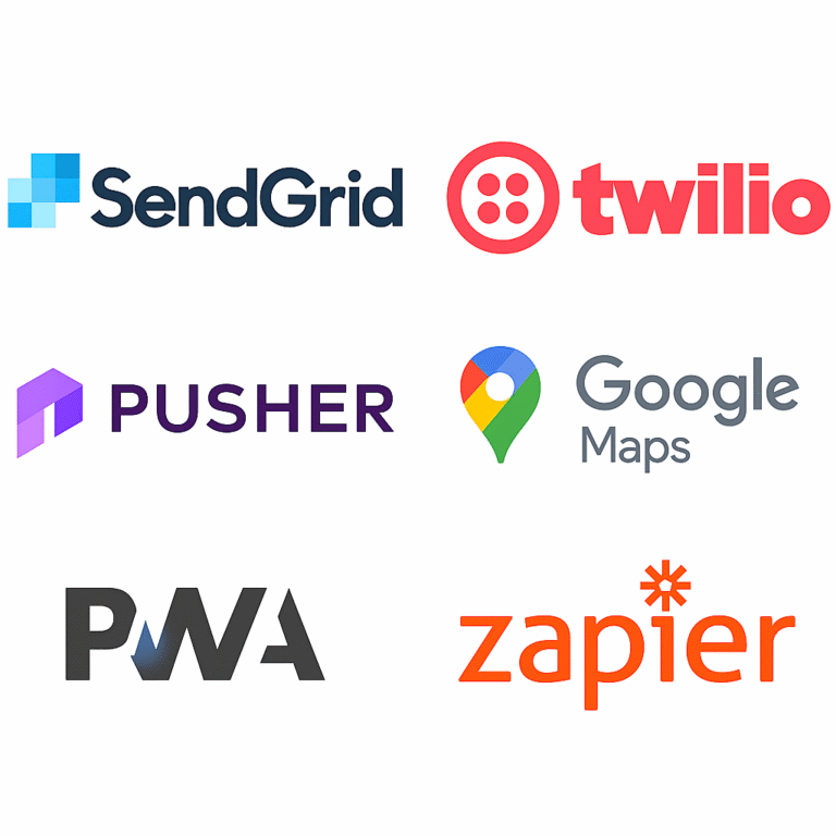 – Twilio for instant SMS alerts, OTPs, and automated call forwarding to partners.
