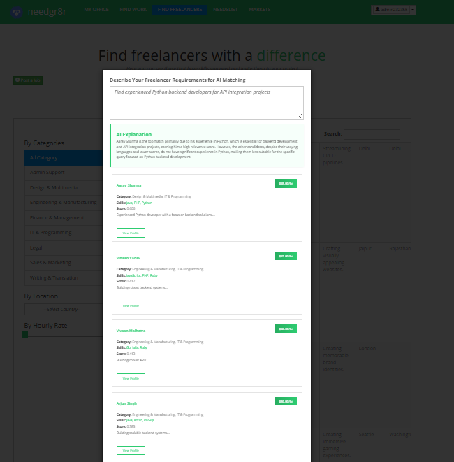 The AI-Powered Modernization of Needgr8r began as a strategic transformation initiative for a fast-growing global freelancing marketplace struggling with operational inefficiencies. As the platform expanded, recruiters found themselves manually reviewing thousands of profiles, writing custom screening forms from scratch, and using keyword-based search tools that often misinterpreted skills or overlooked high-quality candidates.